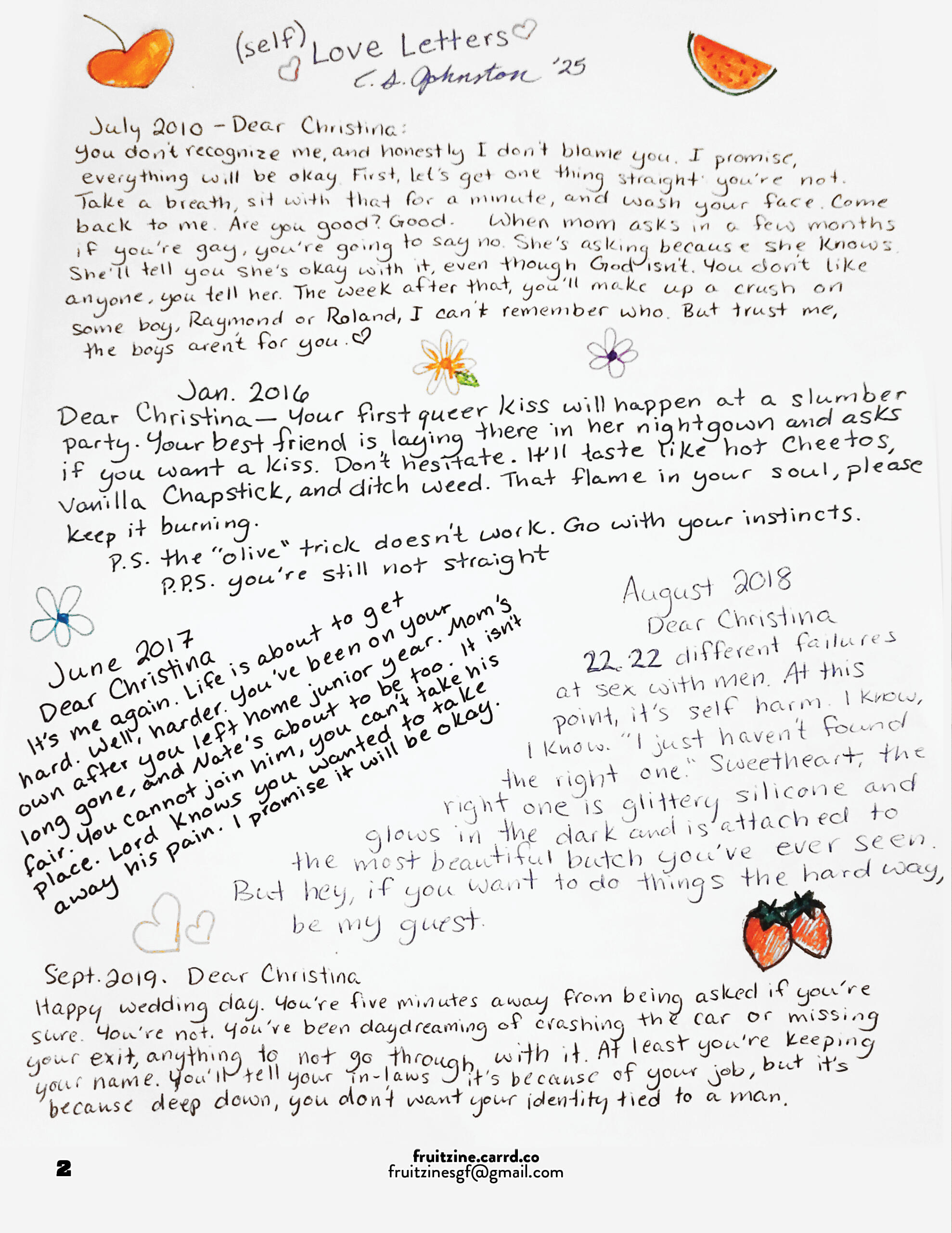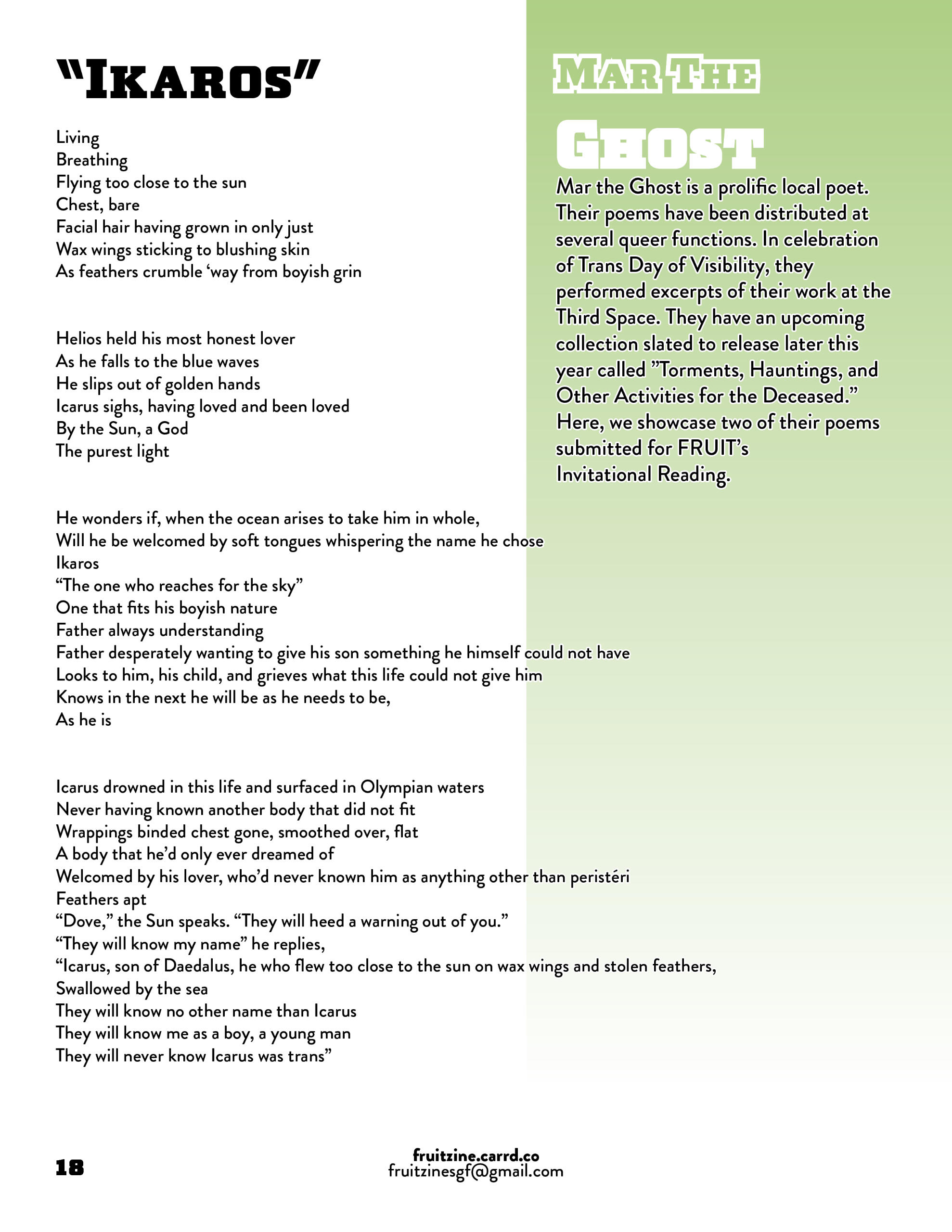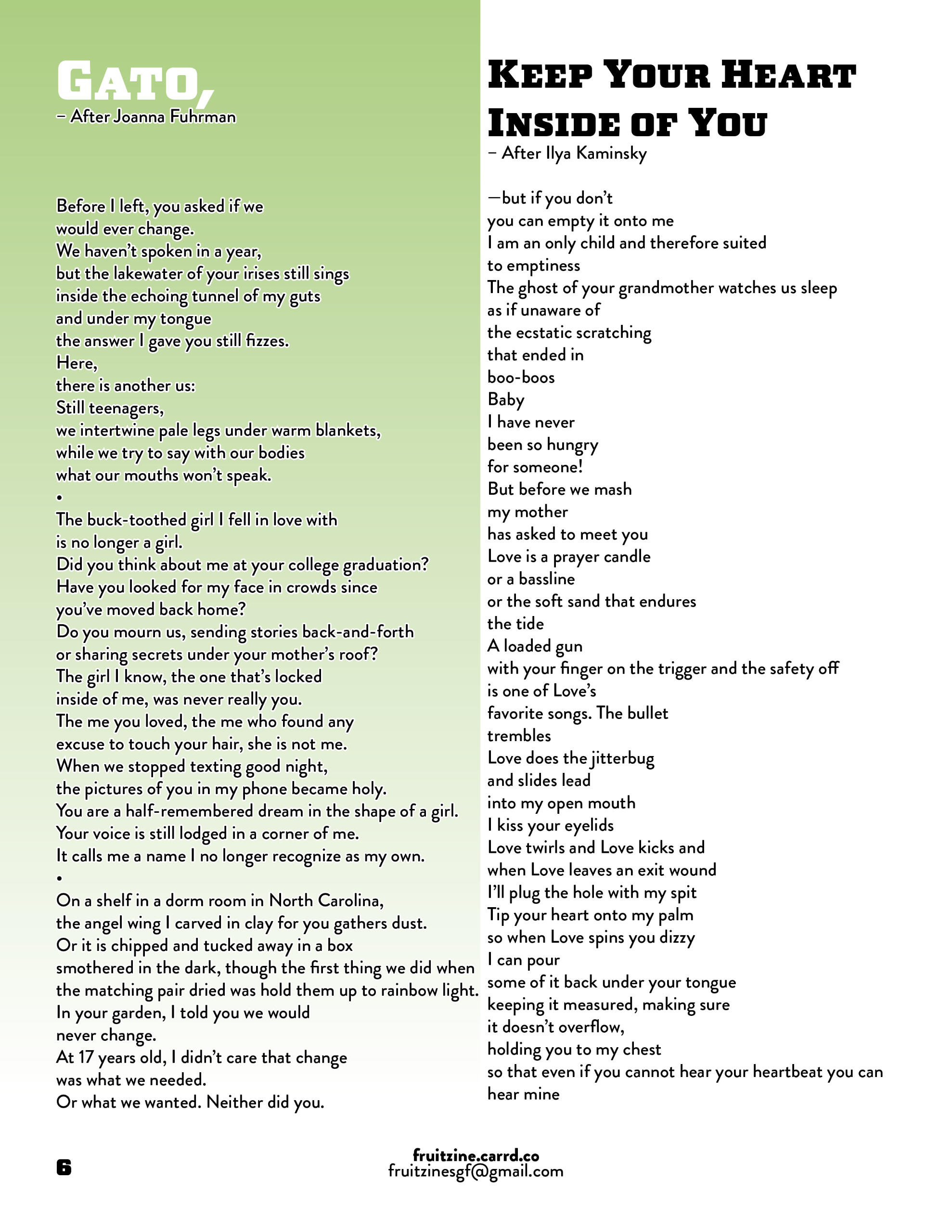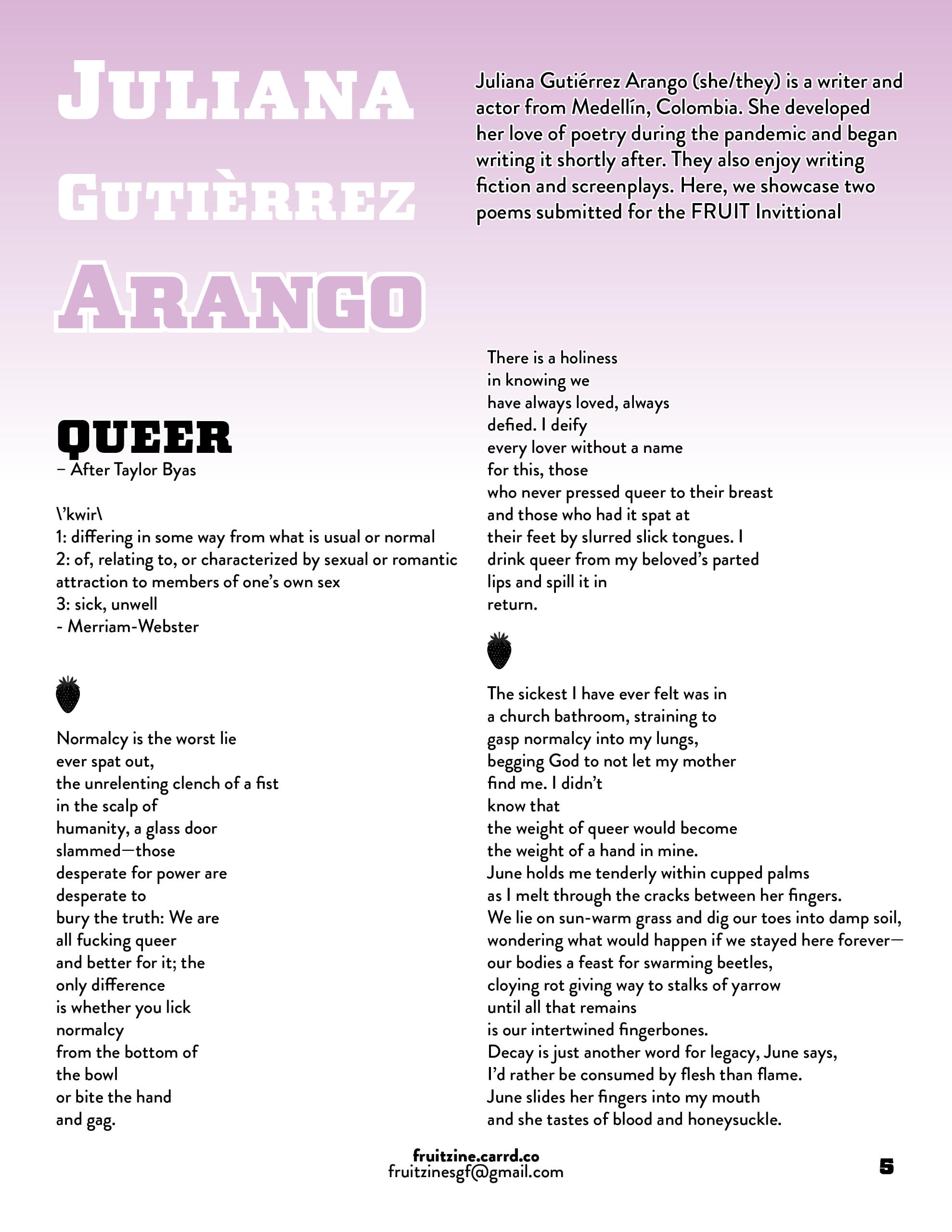 Send your submissions to [email protected]The next issue of FRUIT will be distributed during Halloween !Submissions CLOSE October 25th, 2025Visit our Linktree to browse all of our previous issues!